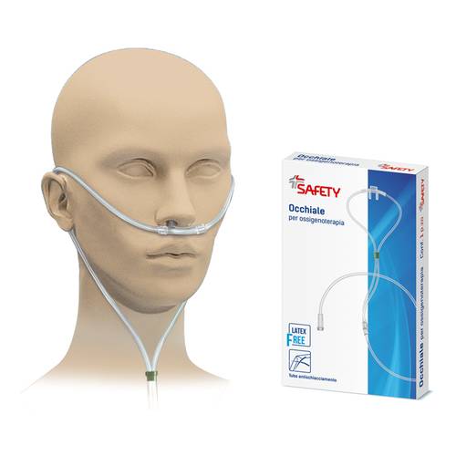 Vedi descrizione completaSafety Dispositivo medico CE. Cannula nasale per la somministrazione terapeutica dell'ossigeno. Tubo antischiacciamento lunghezza cm 210.