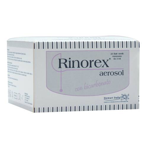Rinorex aerosol con bicarbonato Soluzione salina ipertonica al 3% di NaCl (sodio cloruro), a pH controllato e tamponata con sodio bicarbonato. È una soluzione sterile pronta all'uso, indicata in aerosolterapia come coadiuvante nel trattamento delle affezioni respiratorie, anche di natura virale, con compromissione della clearance muco-ciliare. Ingredienti Aqua, sodium chloride, sodium bicarbonate. Modalità d'uso Utilizzare una fiala da 3 ml due volte al giorno o secondo prescrizione medica. Se necessario, è possibile cominciare anche con un volume inferiore e salire progressivamente. Lavare con accuratezza l'ampolla di...